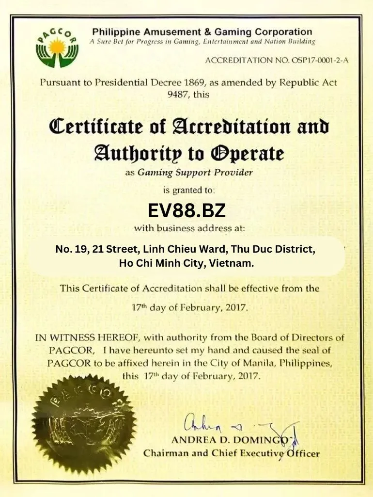 Mục đíchĐảm bảo tính minh bạch và hợp pháp trong mọi hoạt động kinh doanh của EV88 tại Việt Nam.